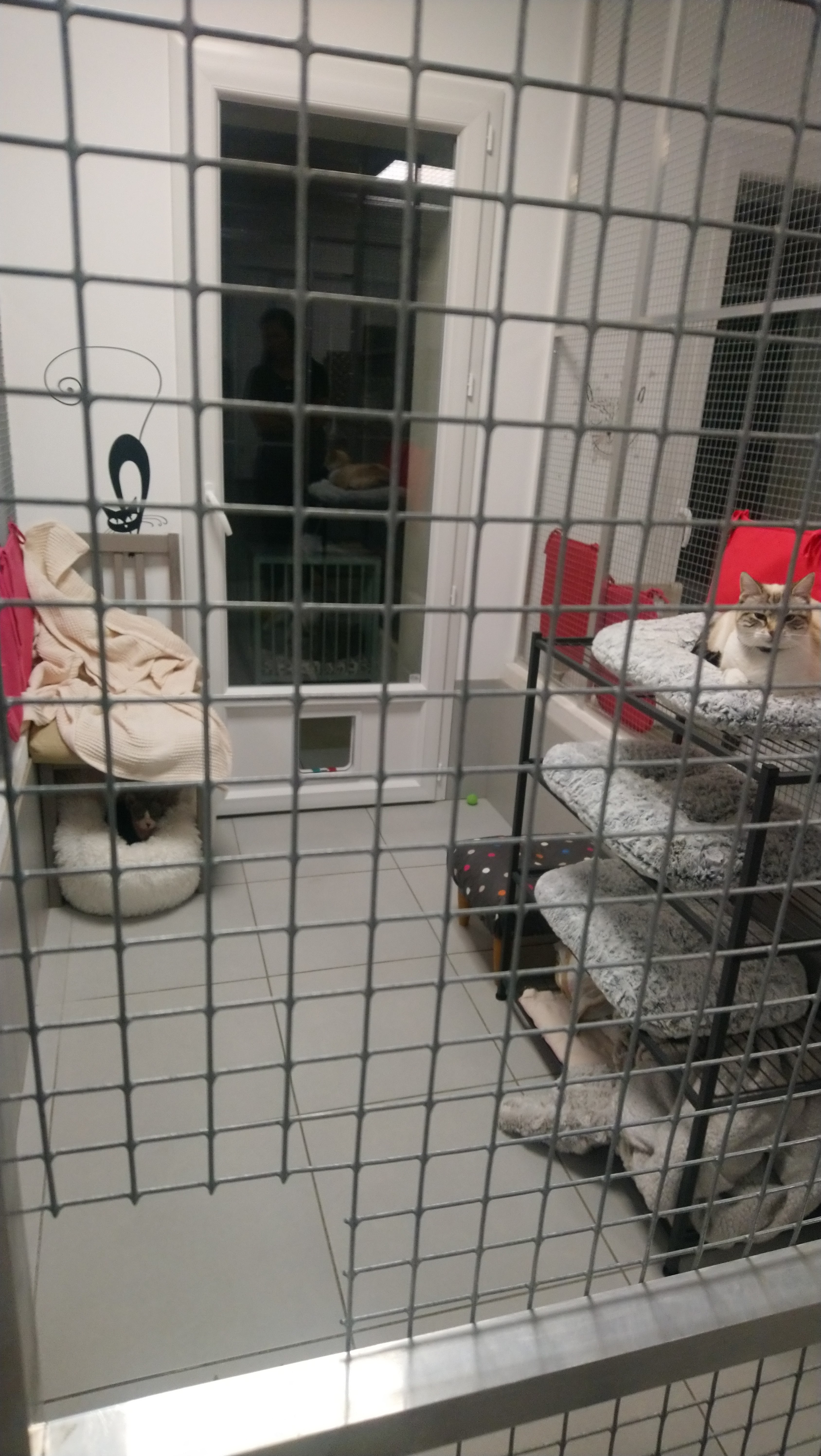 C'est le paradis des chats ! Mes 2 chats y sont restés 5 jours. Chaque box à son extérieur individuel. Mes 2 chats qui s'entendent bien, étaient ensemble. Très bien aménagés avec plusieurs arbres à chat, étagères, chaises … Tout pour grimper ! Les box sont très très propres, vraiment nickel, aucune odeur. Nous sommes partis l'esprit tranquille. La propriétaire donne des nouvelles des compagnons rapidement après les avoir laissés. Cela se voit qu'elle aime son métier, elle nous a fait visiter l'endroit. Elle était très à l'écoute. Dorénavant, nous laisserons nos compagnons là-bas pour les vacances. Je conseille vivement cet endroit ! :)